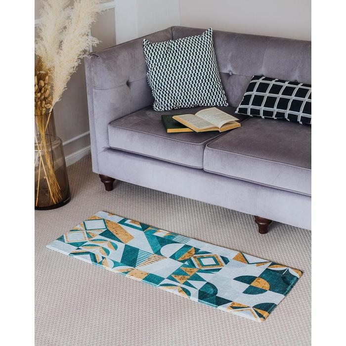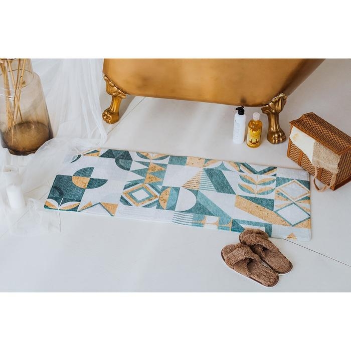 Коврик для ванной Доляна «Тори», 45×120 см, цвет зелёно-жёлтый