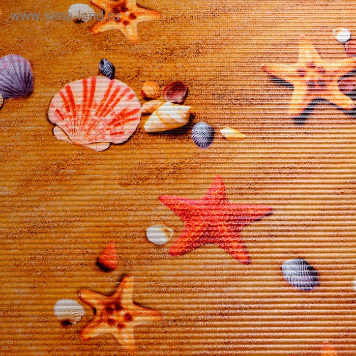 Коврик из ПВХ «Звёздочки,ракушки» — важный атрибут уютной ванной. Его достоинства: