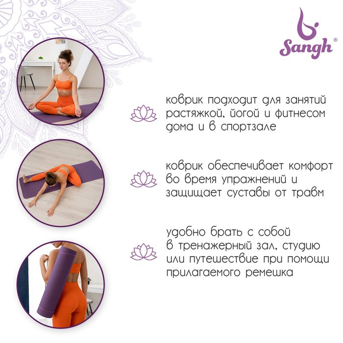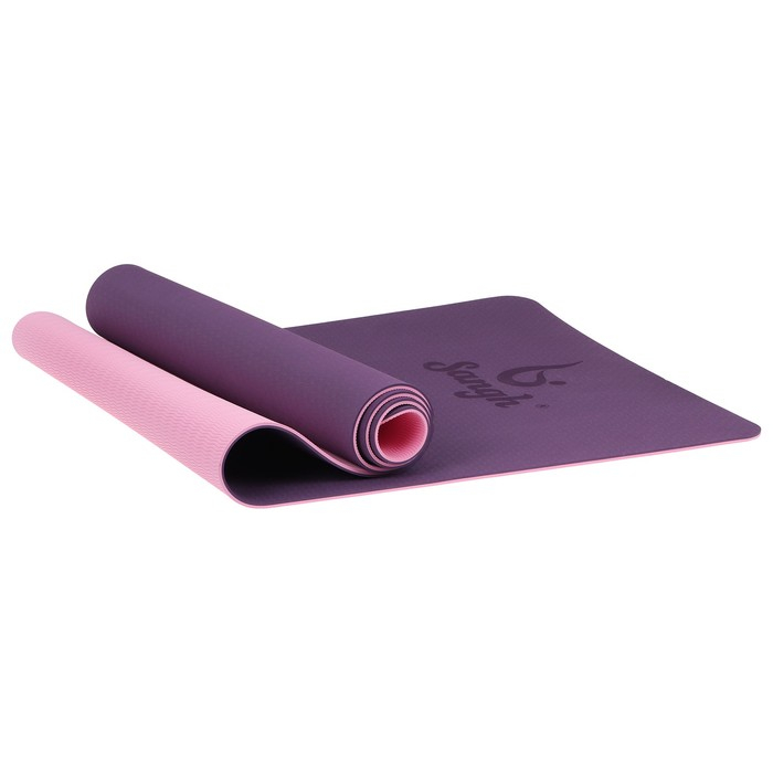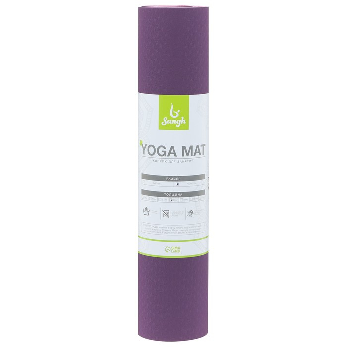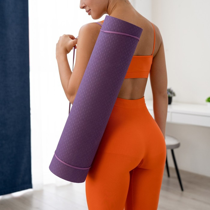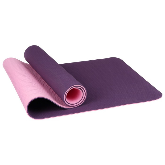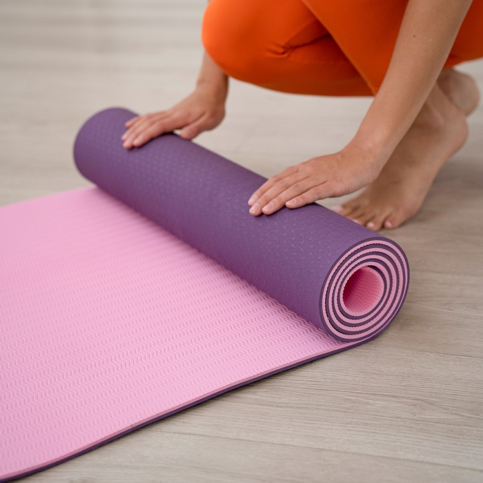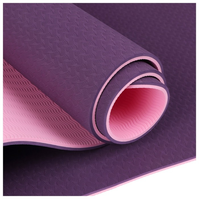 Коврик для йоги 183 × 61 × 0,8 см, двухцветный, цвет фиолетовый