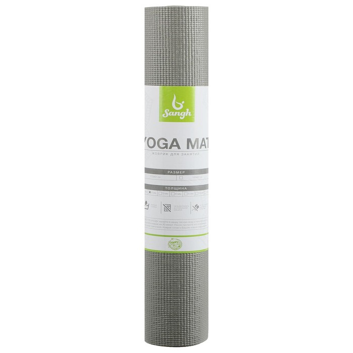 Коврик для йоги Sangh, 173×61×0,4 см, цвет серый