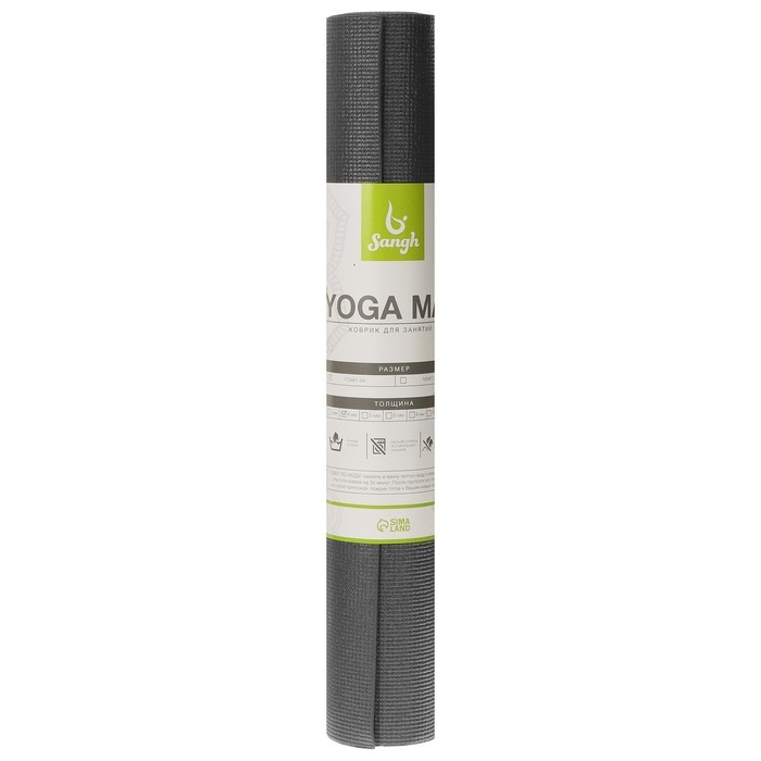 Коврик для йоги Sangh, 173×61×0,4 см, цвет тёмно-серый