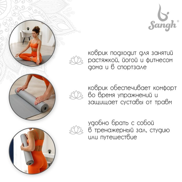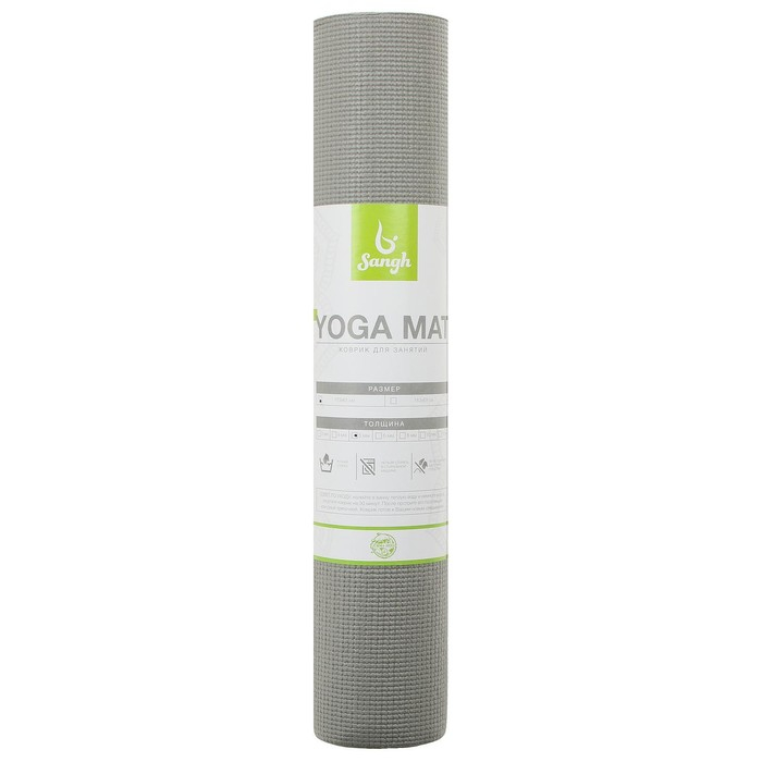 Коврик для йоги Sangh, 173×61×0,5 см, цвет серый