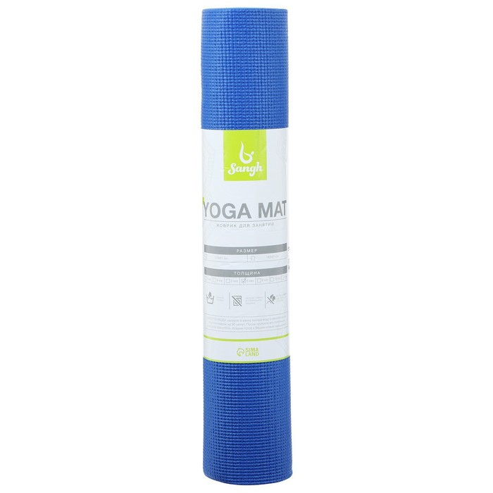 Коврик для йоги Sangh, 173×61×0,6 см, цвет синий