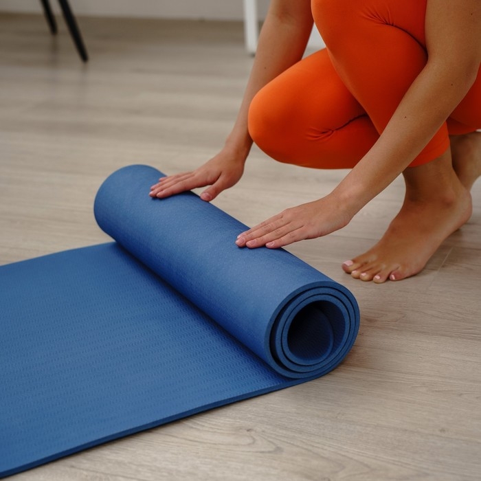 Коврик подходит для занятий йогой и фитнесом дома и в спортивных залах. Помогает в выполнении асан или других упражнений. Смягчает упор тела на твёрдую поверхность. Сохраняет форму после выполнения упражнений.