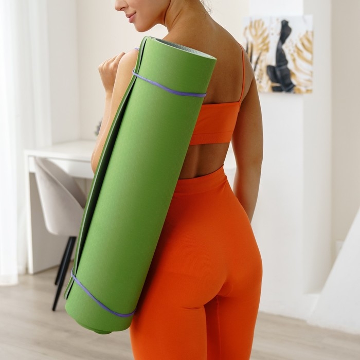 Коврик подходит для занятий йогой и фитнесом дома и в спортивных залах. Помогает в выполнении асан или других упражнений. Смягчает упор тела на твёрдую поверхность. Сохраняет форму после выполнения упражнений.
