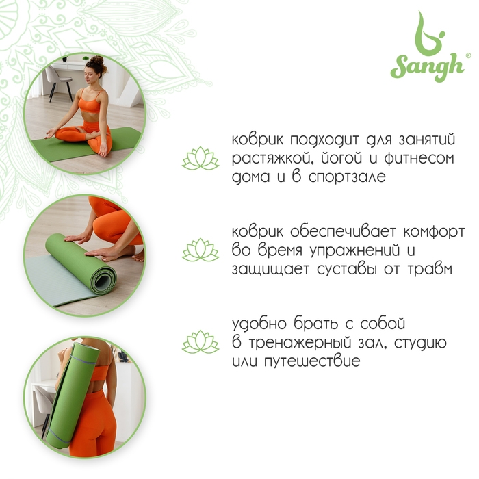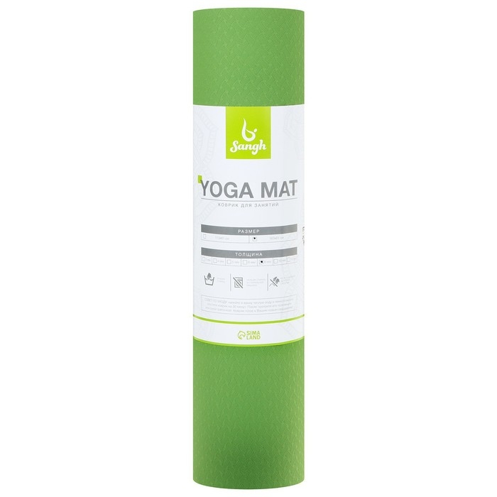 Коврик для йоги Sangh, 183×61×0,8 см, цвет зелёный