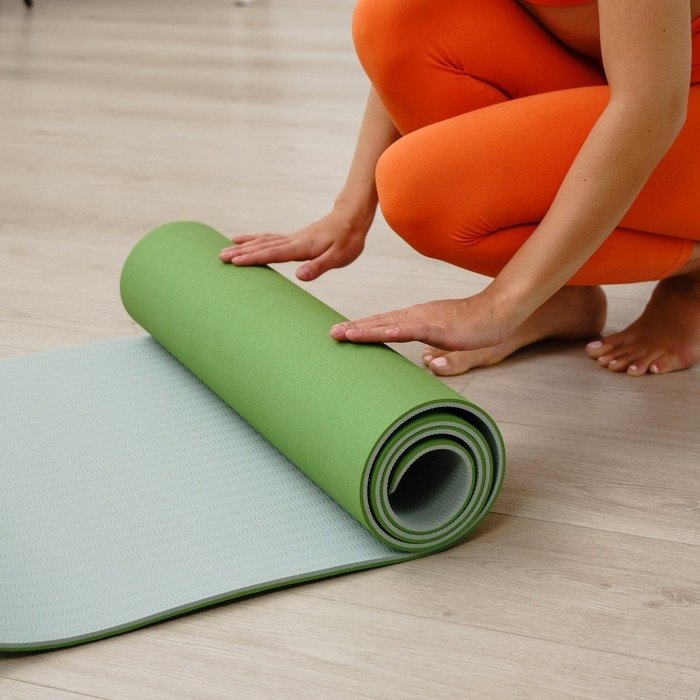 Коврик для йоги Sangh, 183х61х0,6 см, цвет мятный/серый