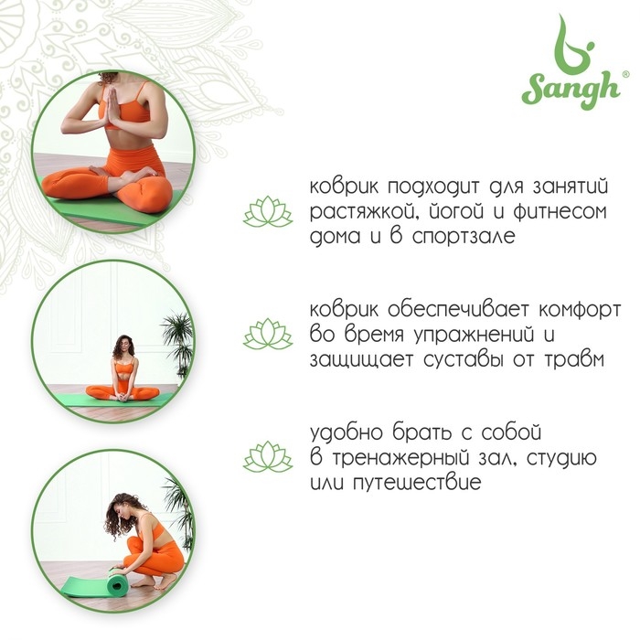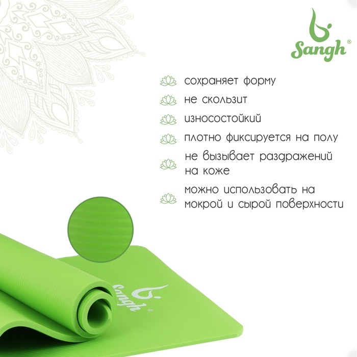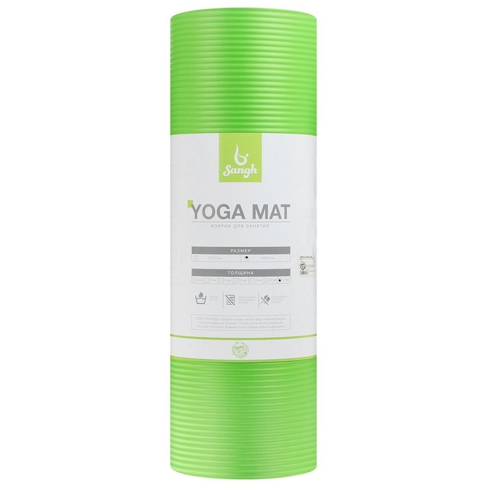 Коврик для йоги Sangh, 183×61×1,5 см, цвет зелёный