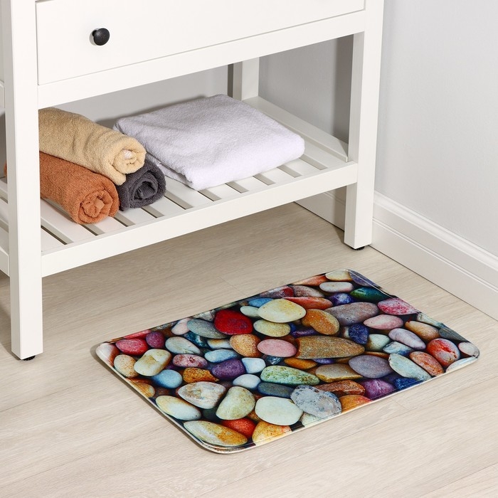 Вас удивит мягкая и нежная текстура коврика, а разнообразные яркие расцветки помогут оживить и дополнить уже существующий дизайн ванной комнаты. Отдельно порадует его низкая стоимость и высокое качество.