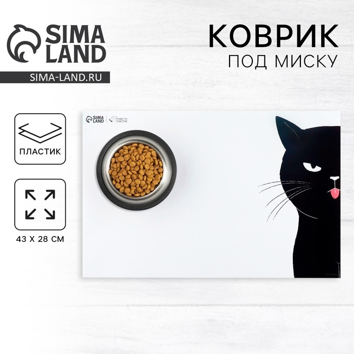 Коврик под миску «Кот не работает, кот ест!» 43х28 см
