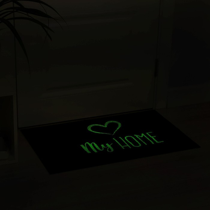 Коврик придверный Доляна My home, 50×80 см, влаговпитывающий, светящийся в темноте, цвет чёрный