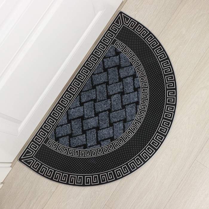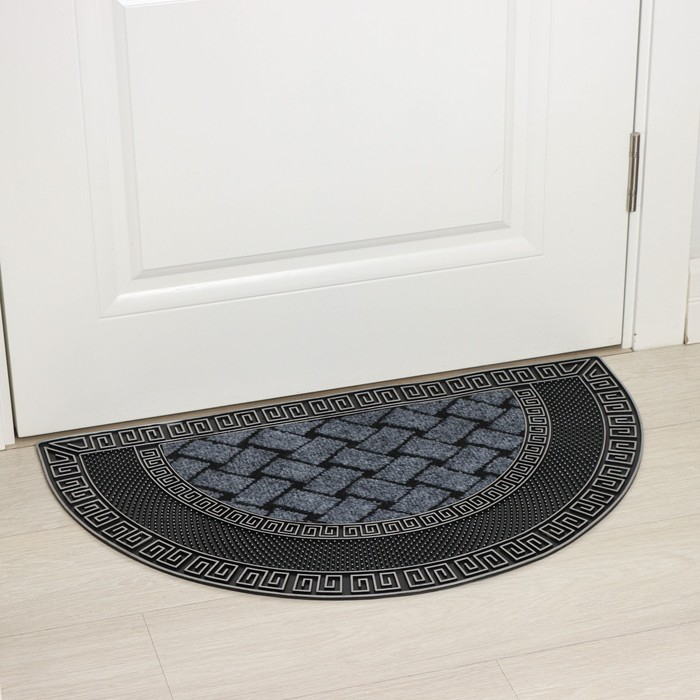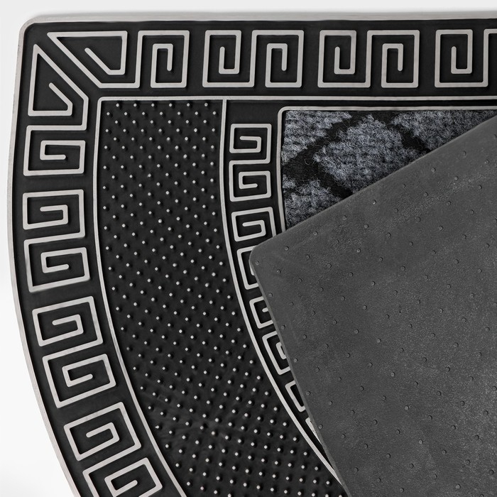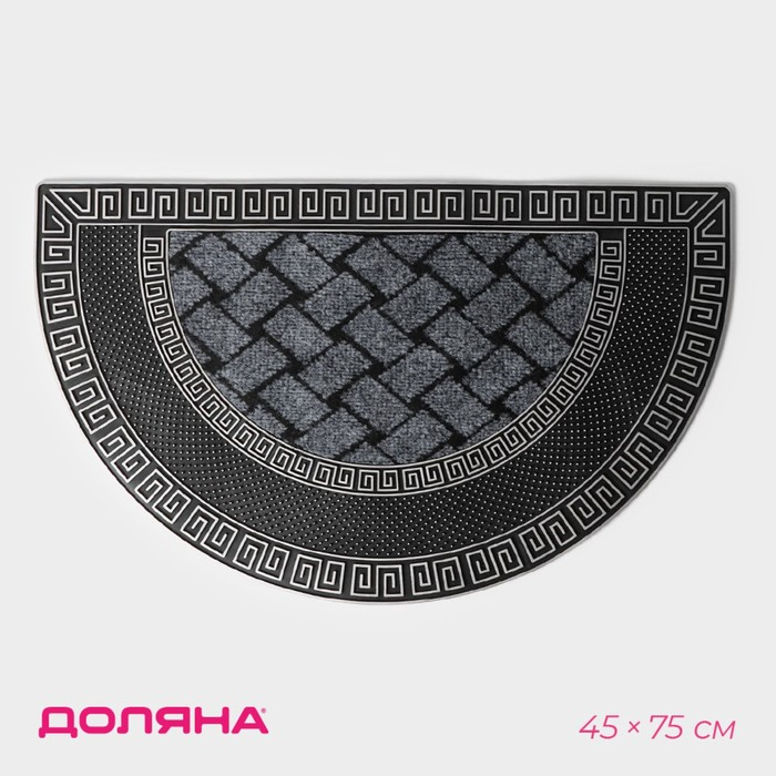 Коврик придверный полукруглый Доляна «Меандр», 45×75 см, цвет серебряный