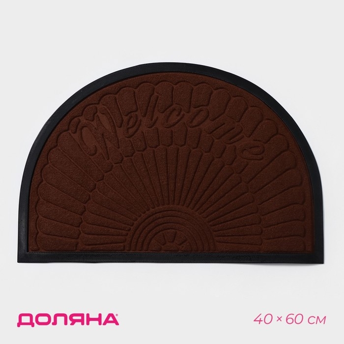 Коврик придверный полукруглый Доляна Welcome арки, 40×60 см, с окантовкой, цвет коричневый