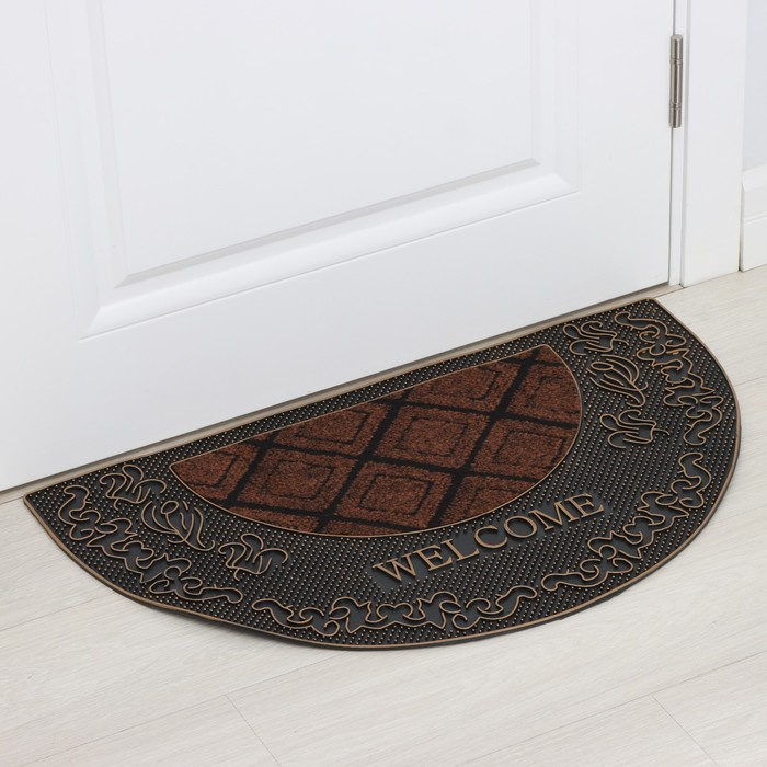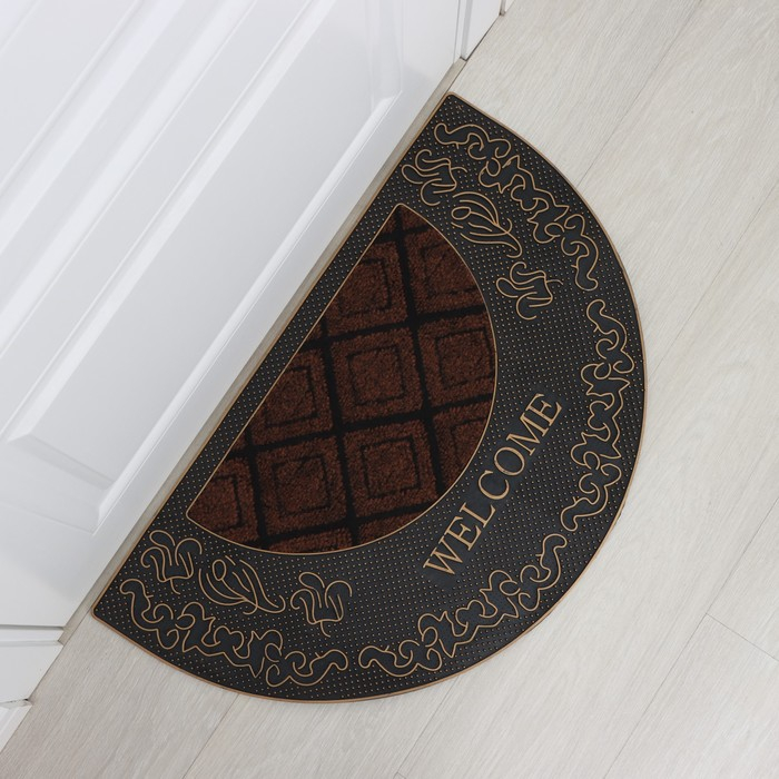 Коврик придверный полукруглый Доляна «Welcome узорный», 45×74 см