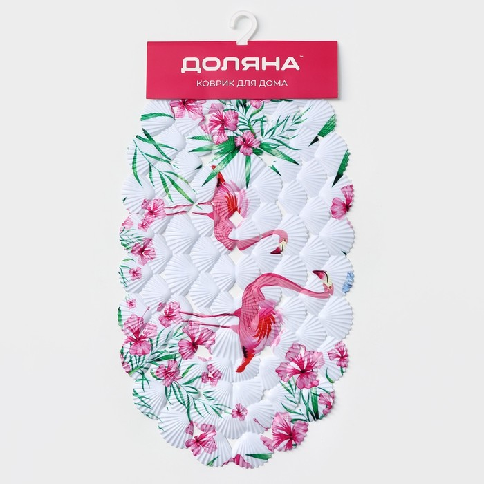 Коврик противоскользящий в ванну на присосках Доляна «Фламинго», 37×67 см