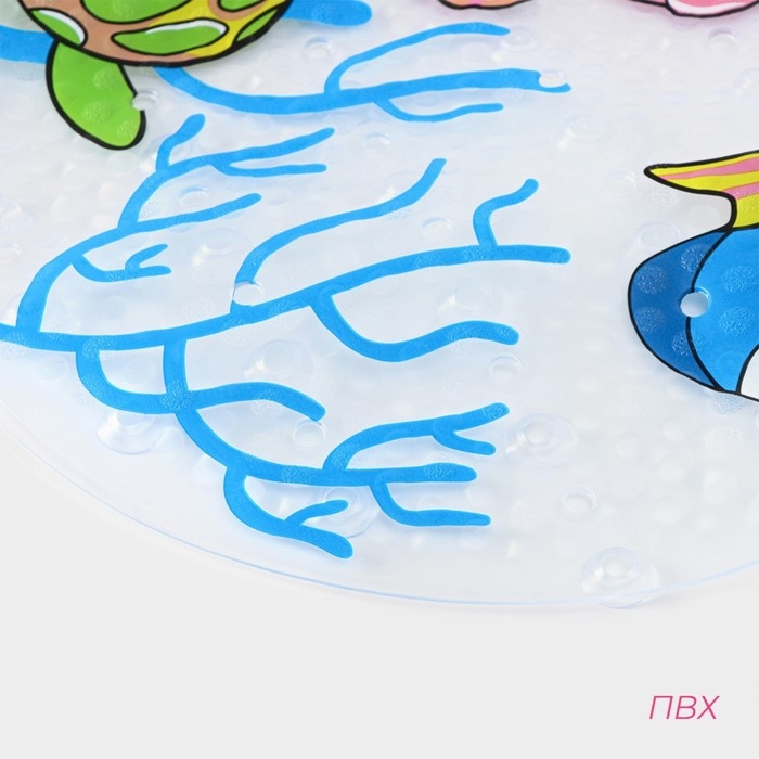Коврик противоскользящий в ванну на присосках Доляна «Морские жители», 36×68 см