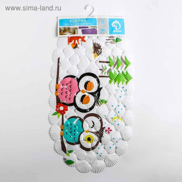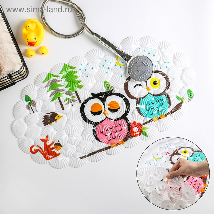 Коврик противоскользящий в ванну на присосках Доляна «Совы», 37×68 см