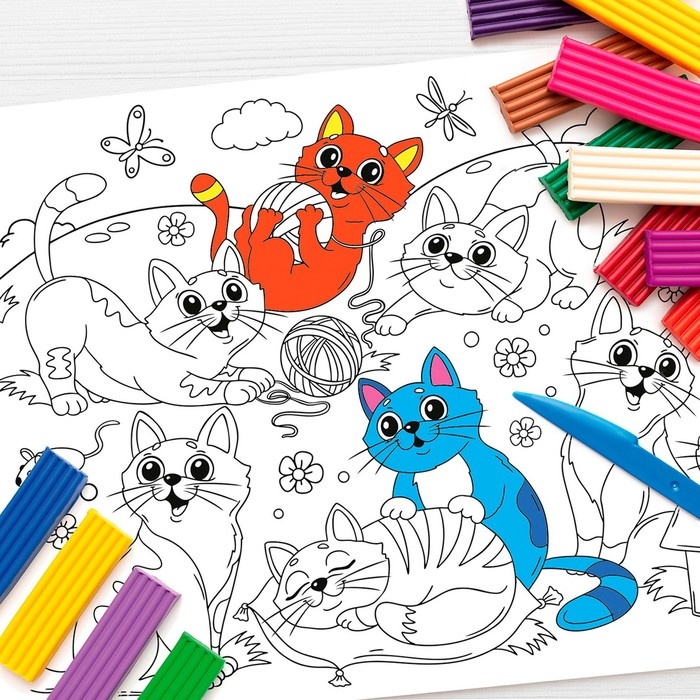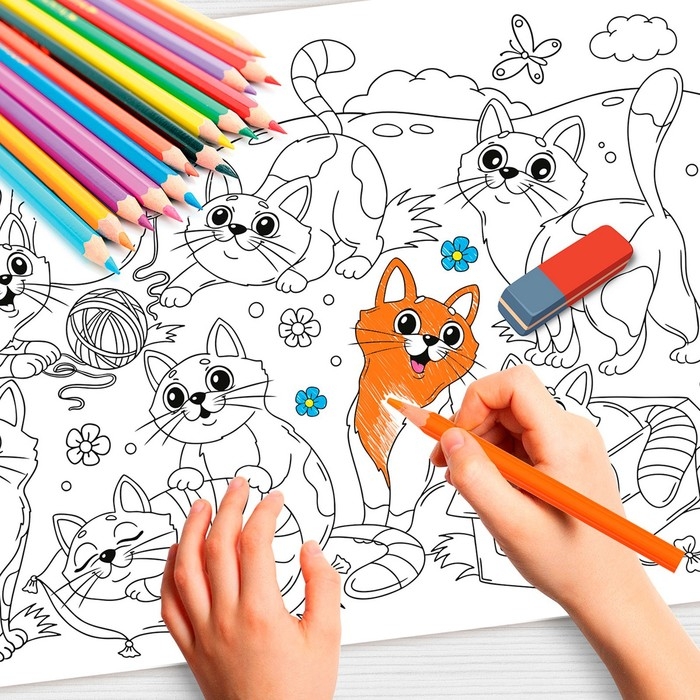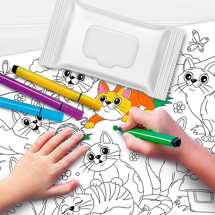 Коврик-раскраска многоразовый «Котики» — это увлекательная и полезная игрушка для детей. Раскрашивать коврик можно цветными карандашами или фломастерами, при этом карандаши стираются обычным ластиком, а фломастеры – просто смываются водой или влажной салфеткой.