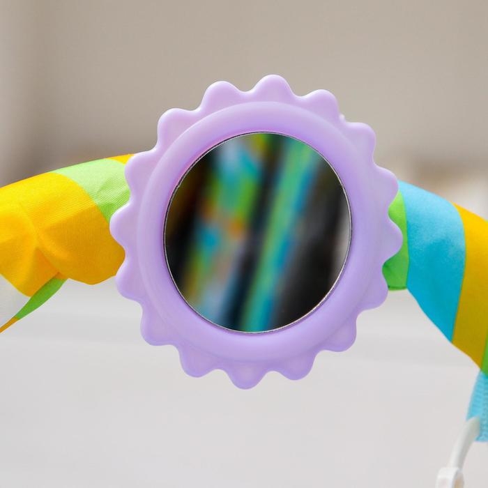 Сначала кроха лёжа на спинке будет просто с интересом разглядывать яркие игрушки на дуге, развивая зрительные навыки и способность фокусировать взгляд на объекте.