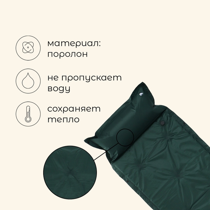 Коврик туристический maclay, самонадувающийся, 188х57х2.5 см, цвет зелёный