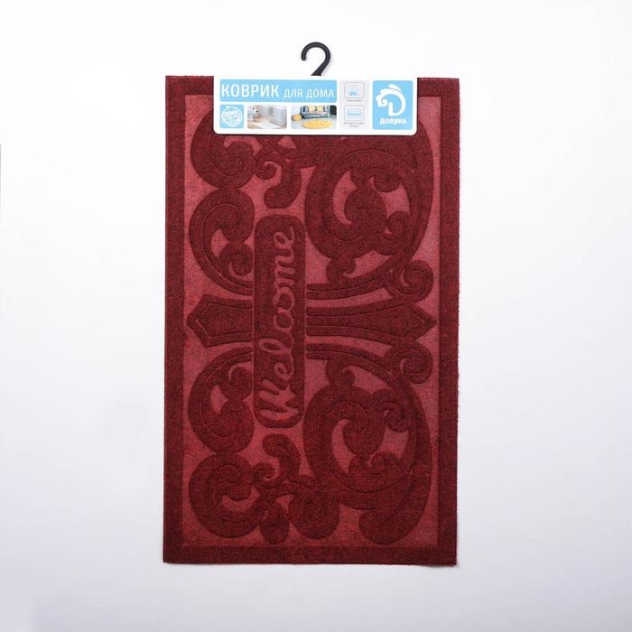 Коврик придверный узорный Доляна «Welcome. Вензель», 45×75 см, цвет чёрный