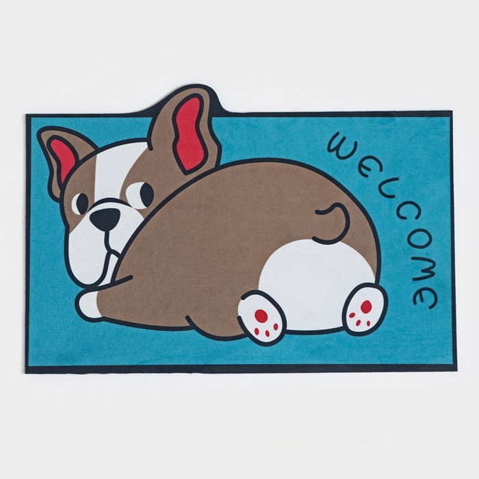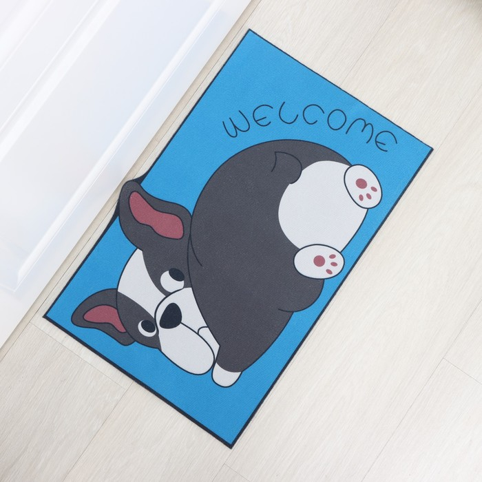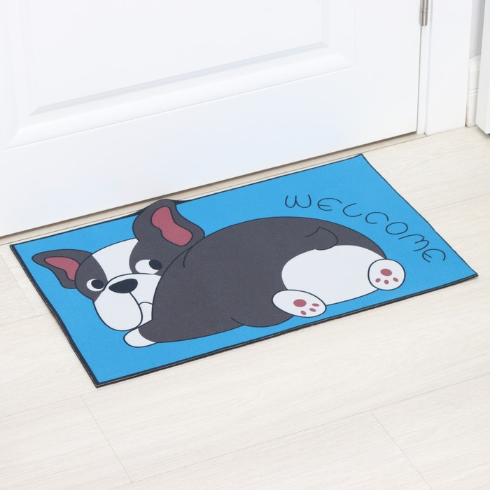 Коврик влаговпитывающий придверный Доляна «Бульдог», без окантовки, 38×57 см, цвет синий