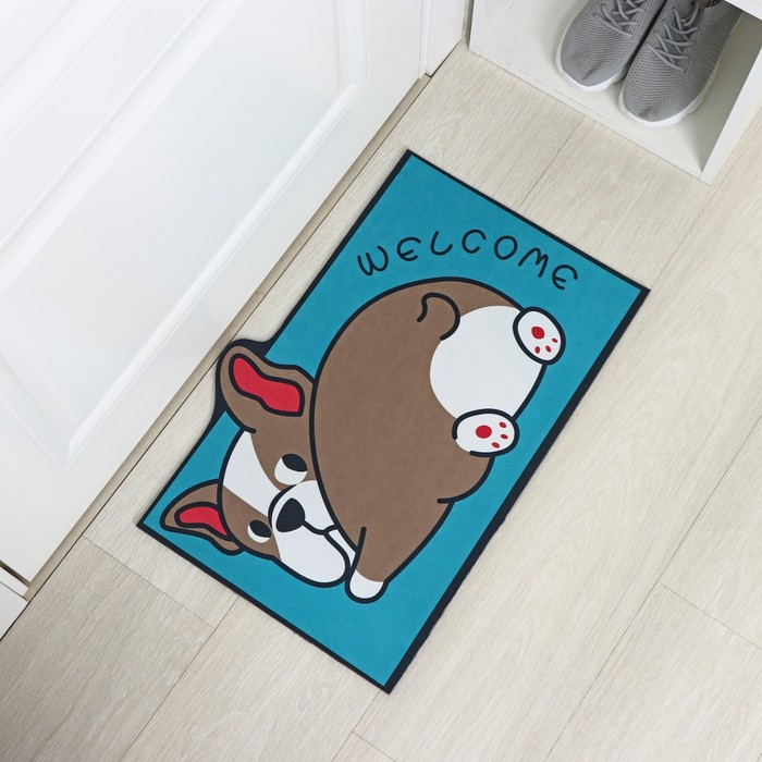 Коврик придверный грязезащитный Доляна «Корги», 40×60 см, цвет зелёный