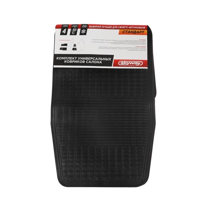 Коврики автомобильные Skyway 009, 4 предмета, резиновый,черный, S01704009