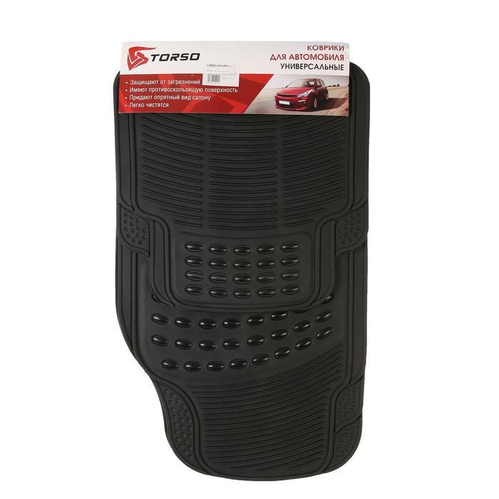 Коврики автомобильные TORSO, резина, 70×44 см, 44×43.5 см, черный, набор 4 шт