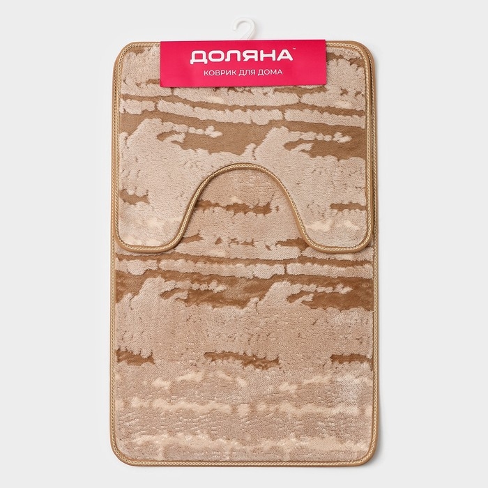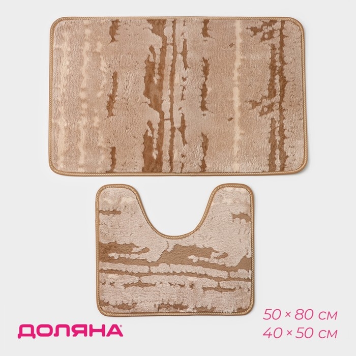 Коврики для ванной и туалета Доляна «Блик», 2 шт: 40×50 см, 50×80 см, цвет бежевый