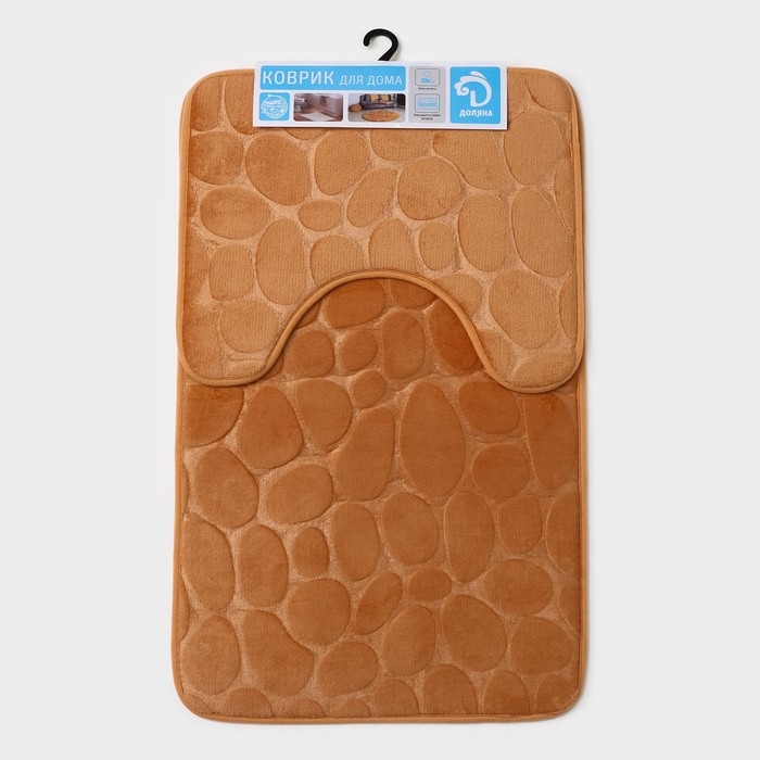 Коврики для ванной и туалета Доляна «Камни», объёмные, 2 шт: 40×50, 50×80 см, цвет бежевый