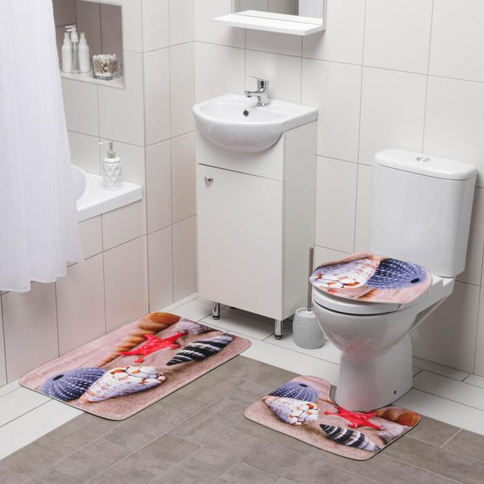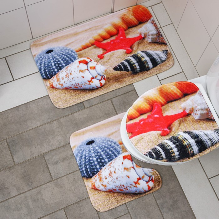 Коврики для ванной и туалета Доляна «Ракушки на песке», 3 шт: 35×39 см, 40×50 см, 45×75 см