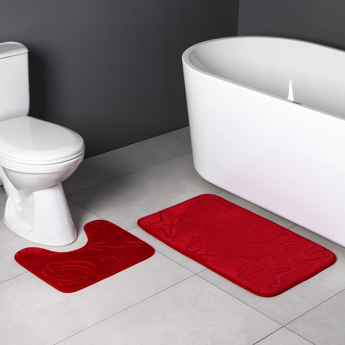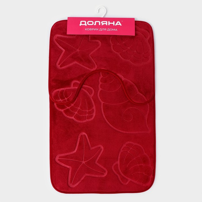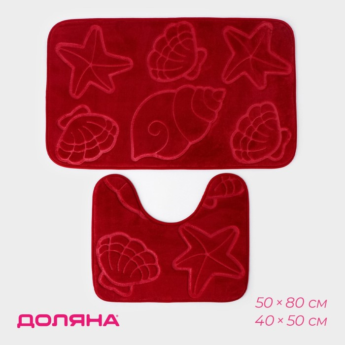 Коврики для ванной и туалета Доляна «Ракушки», объёмные, 2 шт: 40×50, 50×80 см, цвет бордовый