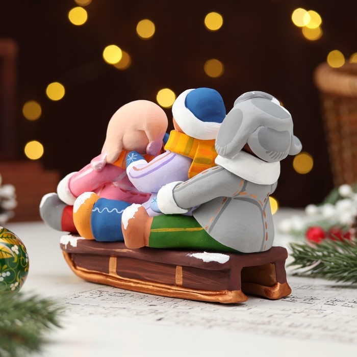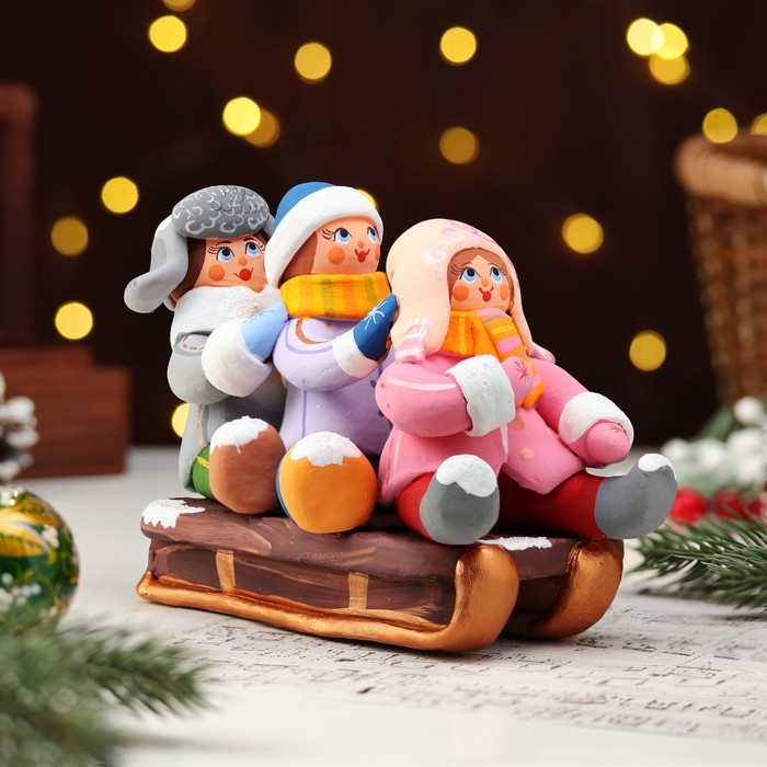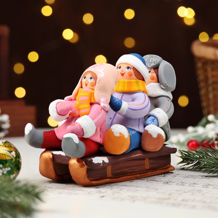 Ковровская игрушка "Дети на санках", керамика