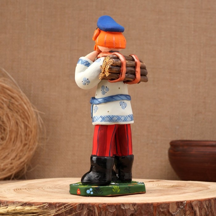 Ковровская игрушка "Мужик с вязанкой дров", керамика