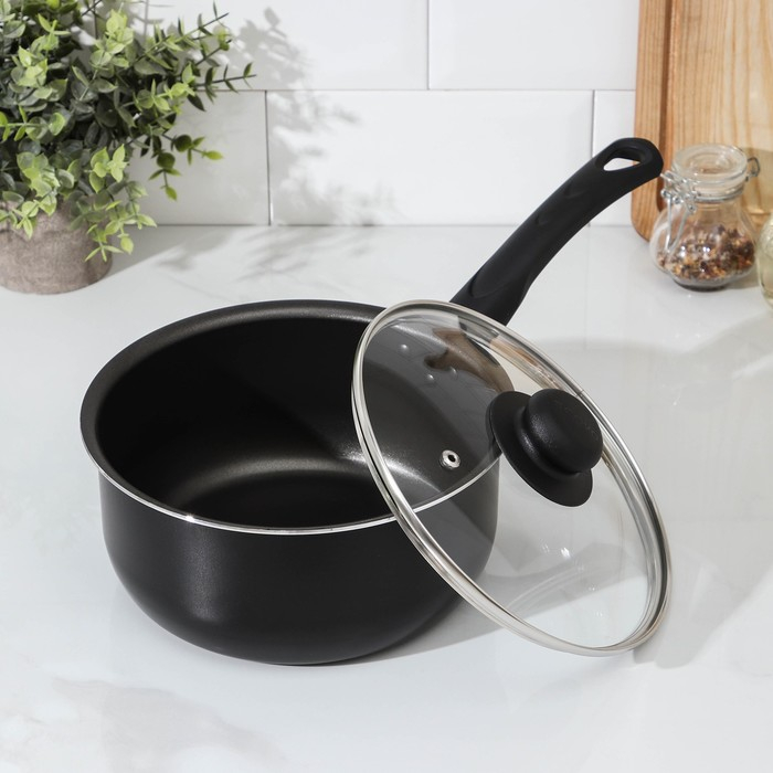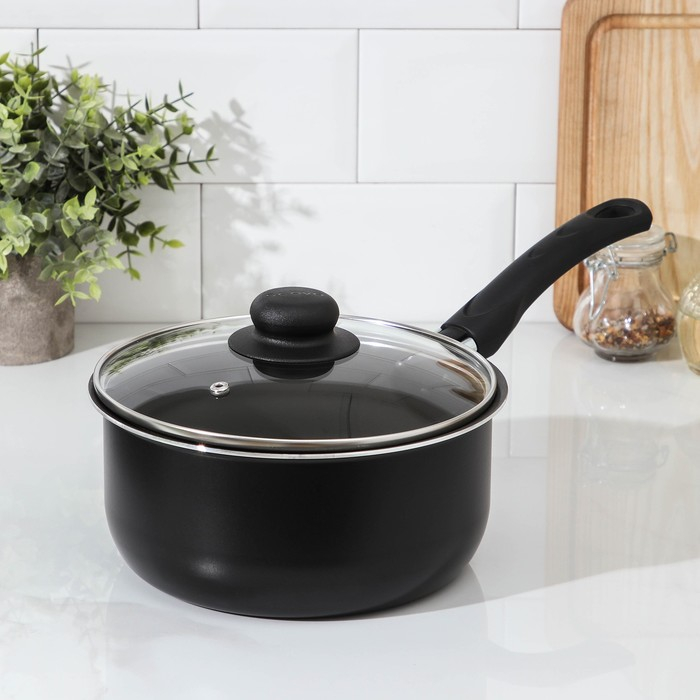 Ковш Consul, 2,7 л, стеклянная крышка, пластиковая ручка, антипригарное покрытие, цвет чёрный