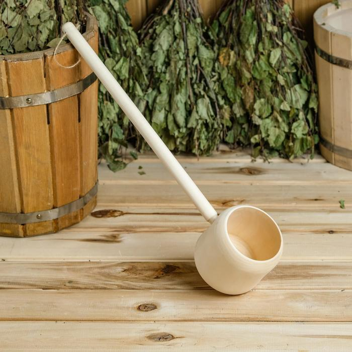 Ковш для бани из липы 0.9л, 51 см, нержавеющая вставка, с горизонтальной ручкой