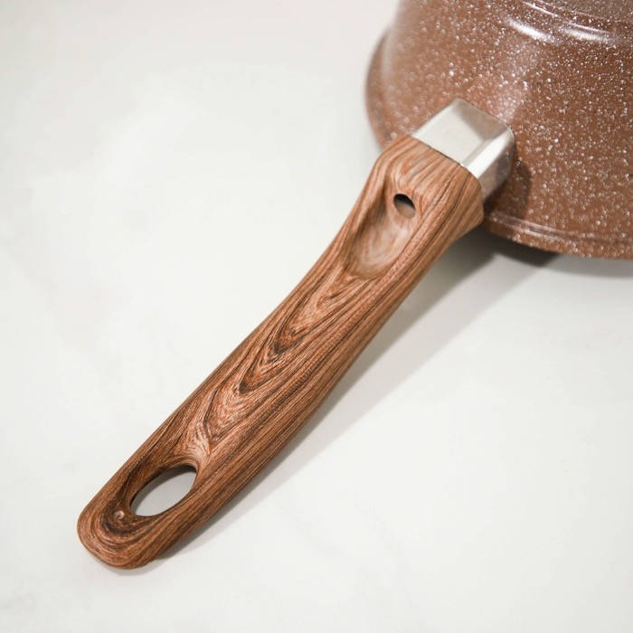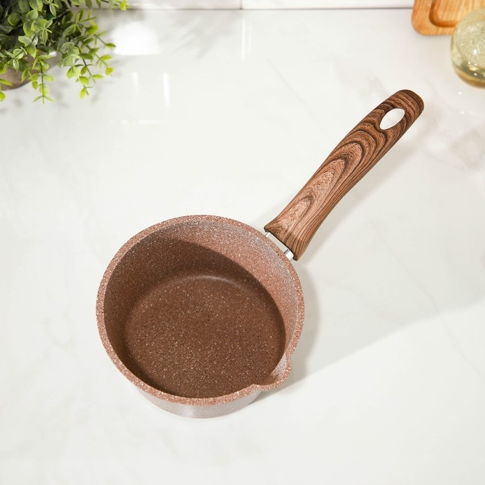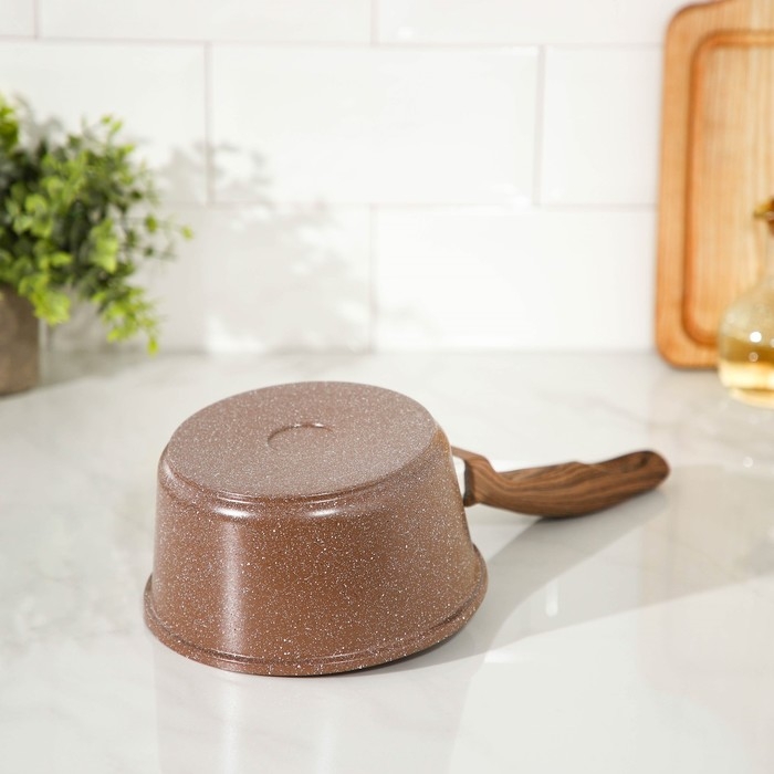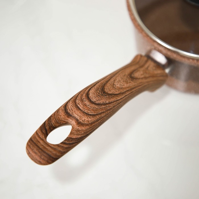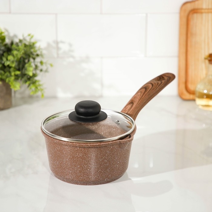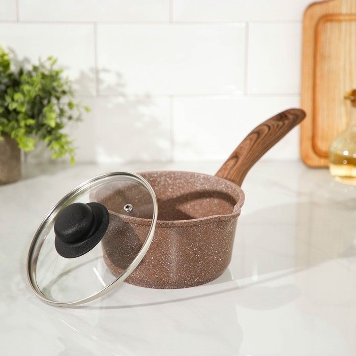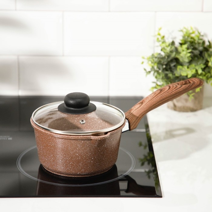 Ковш Доляна «Брауни», 1,3 л, d=17 см, h=8,3 см, стеклянная крышка, антипригарное покрытие, индукция