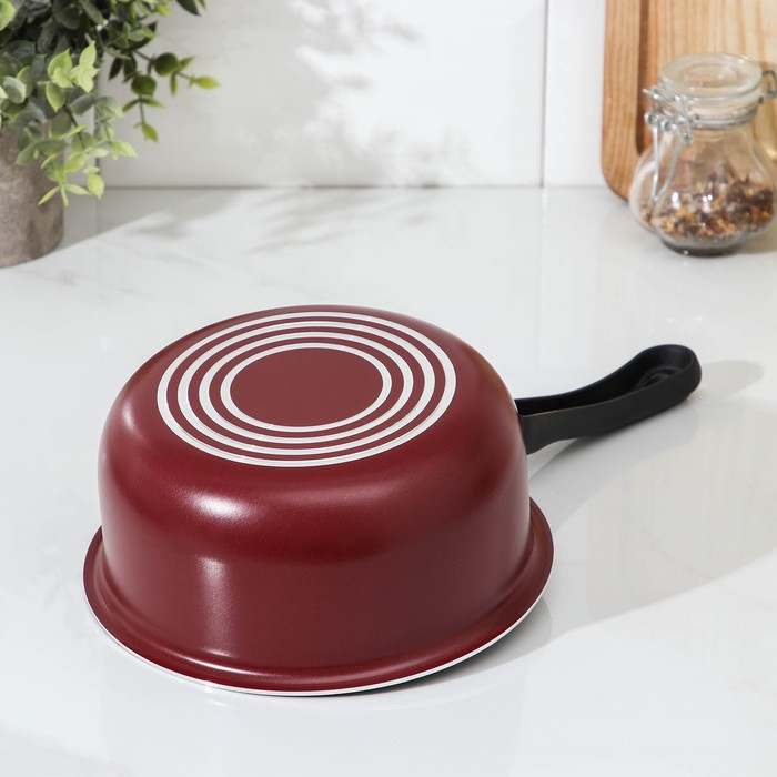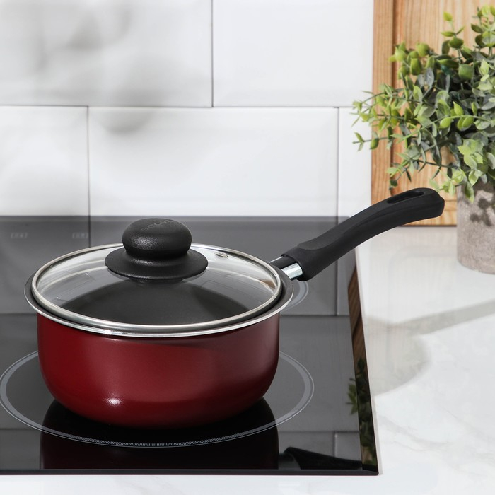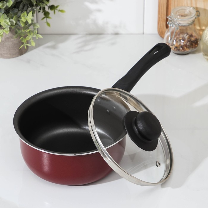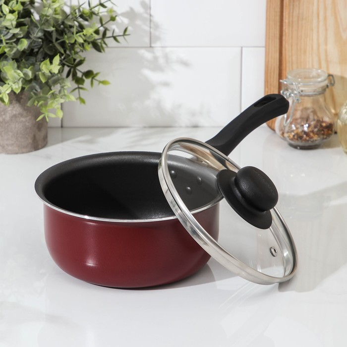 Ковш «Эксперт», 1,3 л, d=16 см, стеклянная крышка, пластиковая ручка, антипригарное покрытие, цвет бордовый