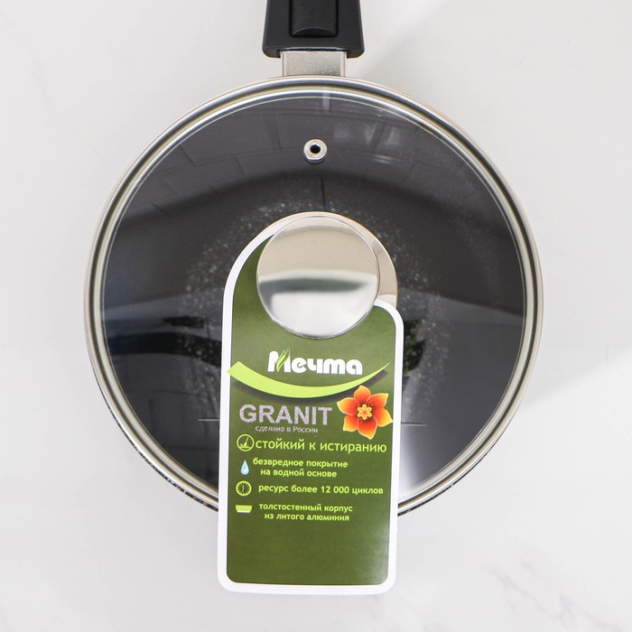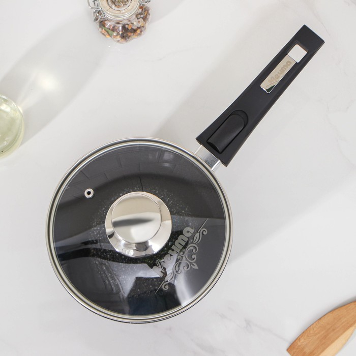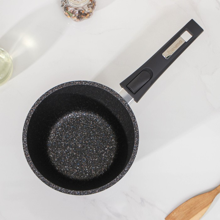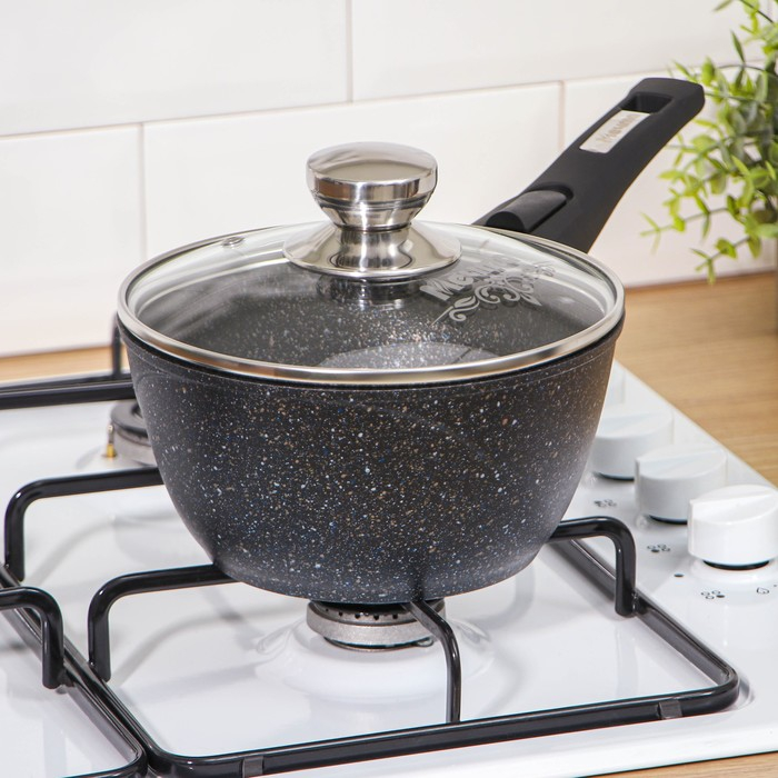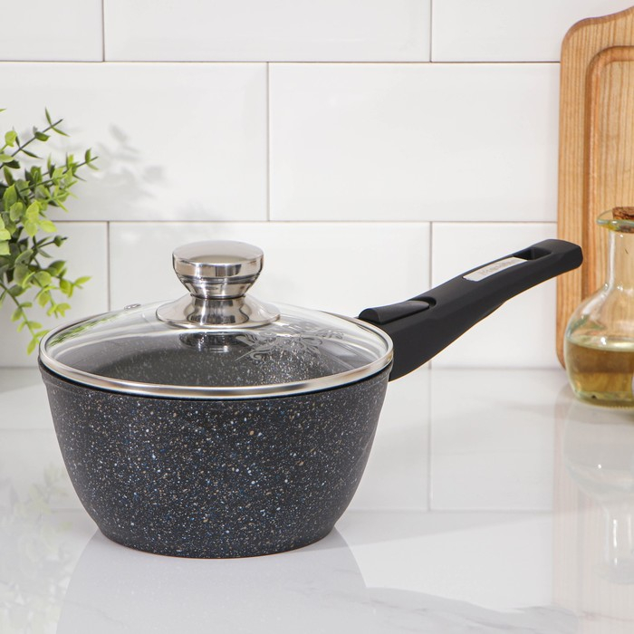 Ковш «Гранит Stаr», 1,7 л, съёмная ручка, стеклянная крышка, антипригарное покрытие, цвет тёмно-синий