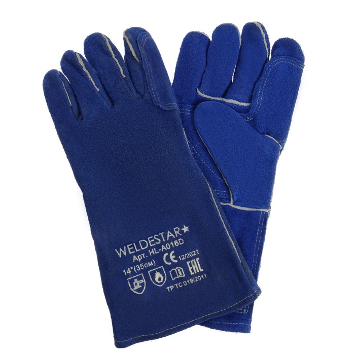 Краги сварщика спилковые WELDESTAR, 350 мм, АВ, усиленные, синие