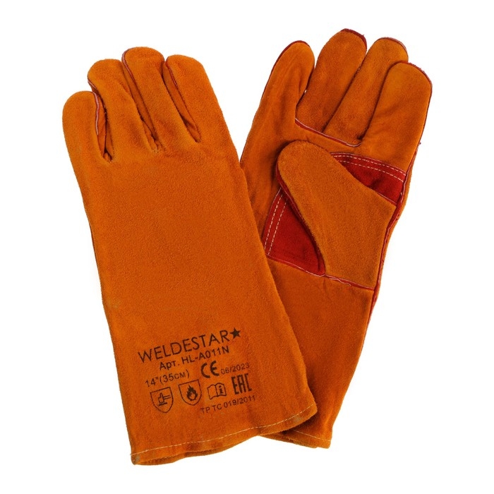 Краги сварщика спилковые WELDESTAR, 350 мм, АВ, желто-красные