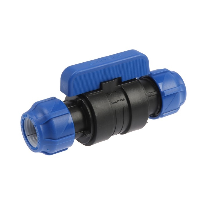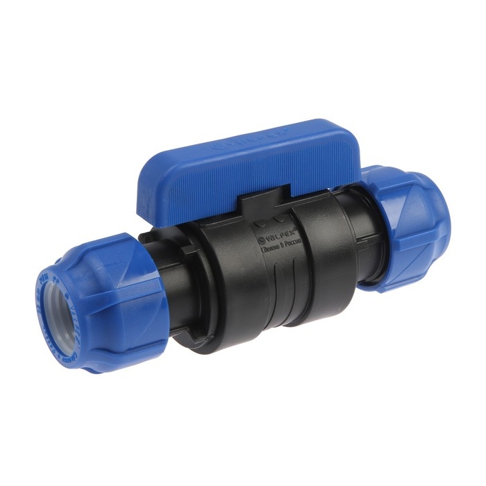 Кран шаровой ПНД Valfex, d=32 х 32 мм, цанга/цанга, разборный