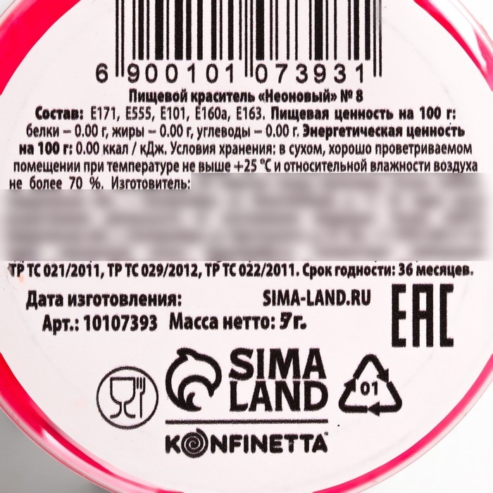 Краситель неоновый KONFINETTA, ярко розовый, 7 г.