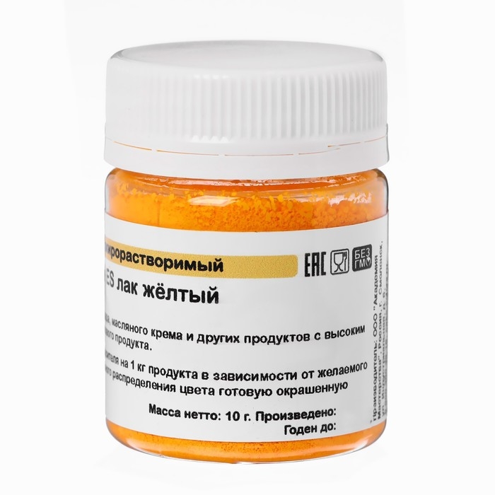Предназначен для придания оттенка пищевым продуктам с большим содержанием жира. Не изменяет вкус и запах готового продукта.