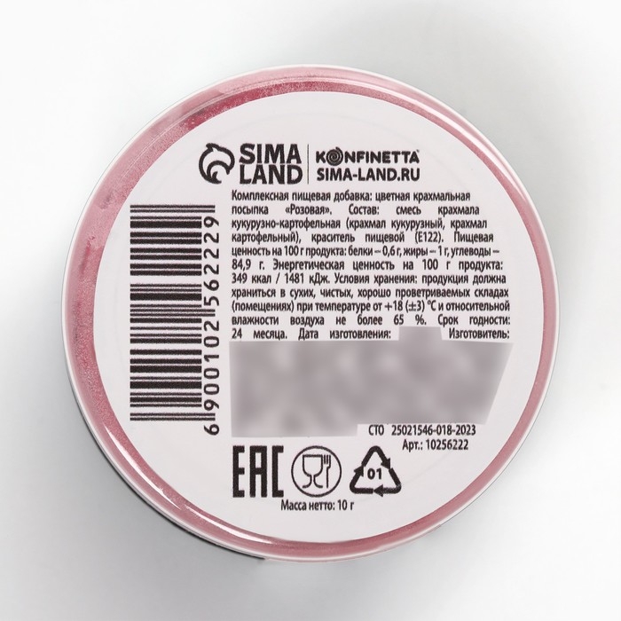 Состав: смесь крахмала кукурузно-картофельная (крахмал кукурузный, крахмал картофельный), краситель пищевой (Е122).