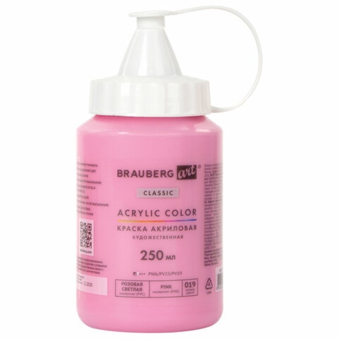 Краска акриловая художественная 250 мл, BRAUBERG ART CLASSIC, Розовая светлая