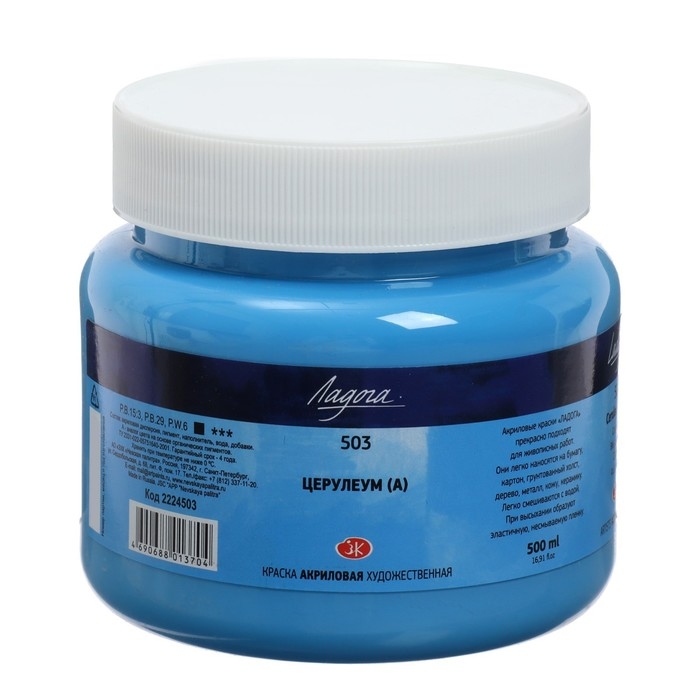 Краска акриловая художественная 500 мл, ЗХК "Ладога", церулеум, 2224503