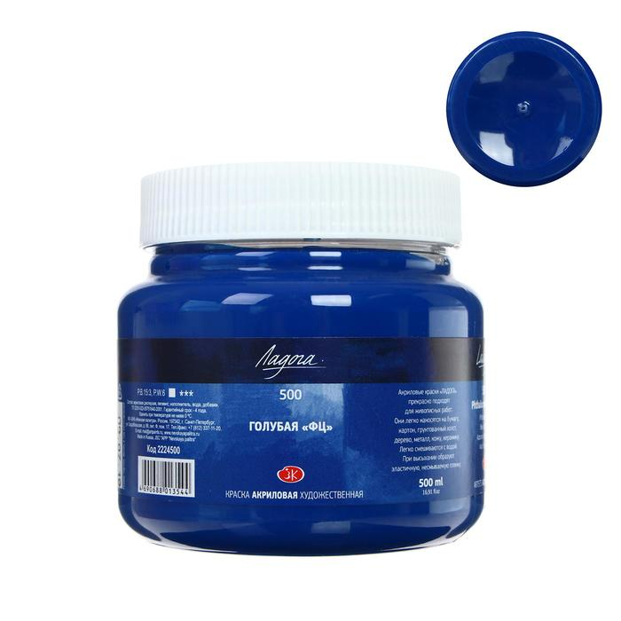 Краска акриловая художественная 500 мл, ЗХК "Ладога", голубая ФЦ, 2224500