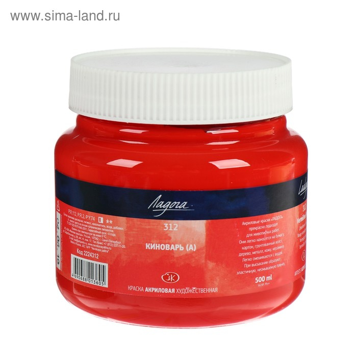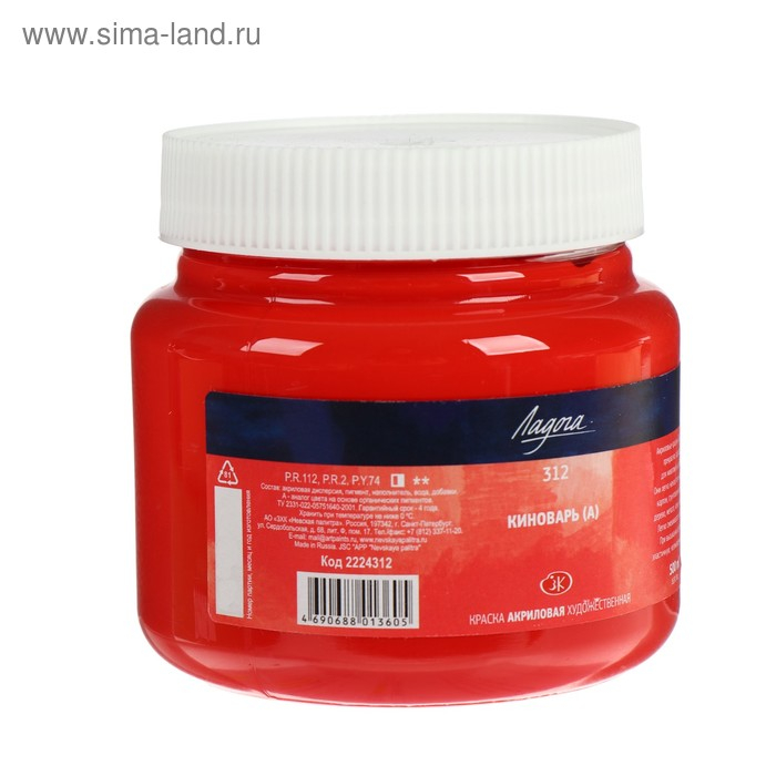 Краска акриловая художественная 500 мл, ЗХК "Ладога", киноварь, 2224312
